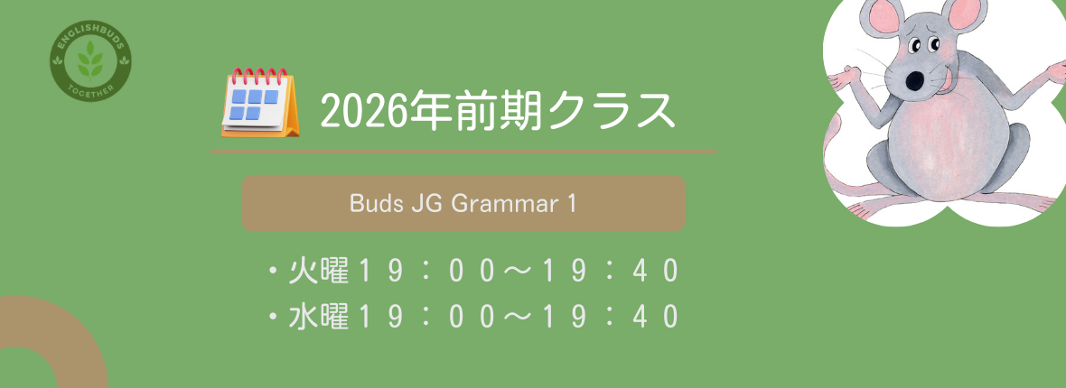 Buds JG Grammar1は、Jolly Phonics同音異綴りまでの復習を通じて、文法(句読点、品詞など)を体系的に学ぶクラスです。MommyKayoが楽しく丁寧に指導し、読み書きに加えて文法力も強化。おうち英語をさらに充実させるためのステップアップクラスです!