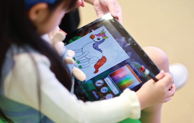 アプリを使って線を引き、色をぬり、世界にひとつの作品をつくろう。