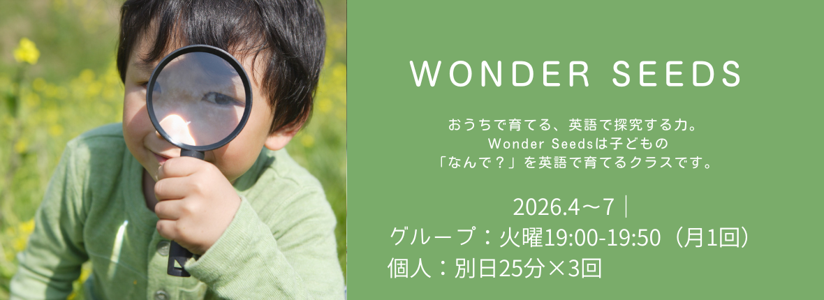 Wonder Seedsは、子どもたちが「なんで?」と思ったことをテーマに、英語で調べて、まとめて、発表するクラス。